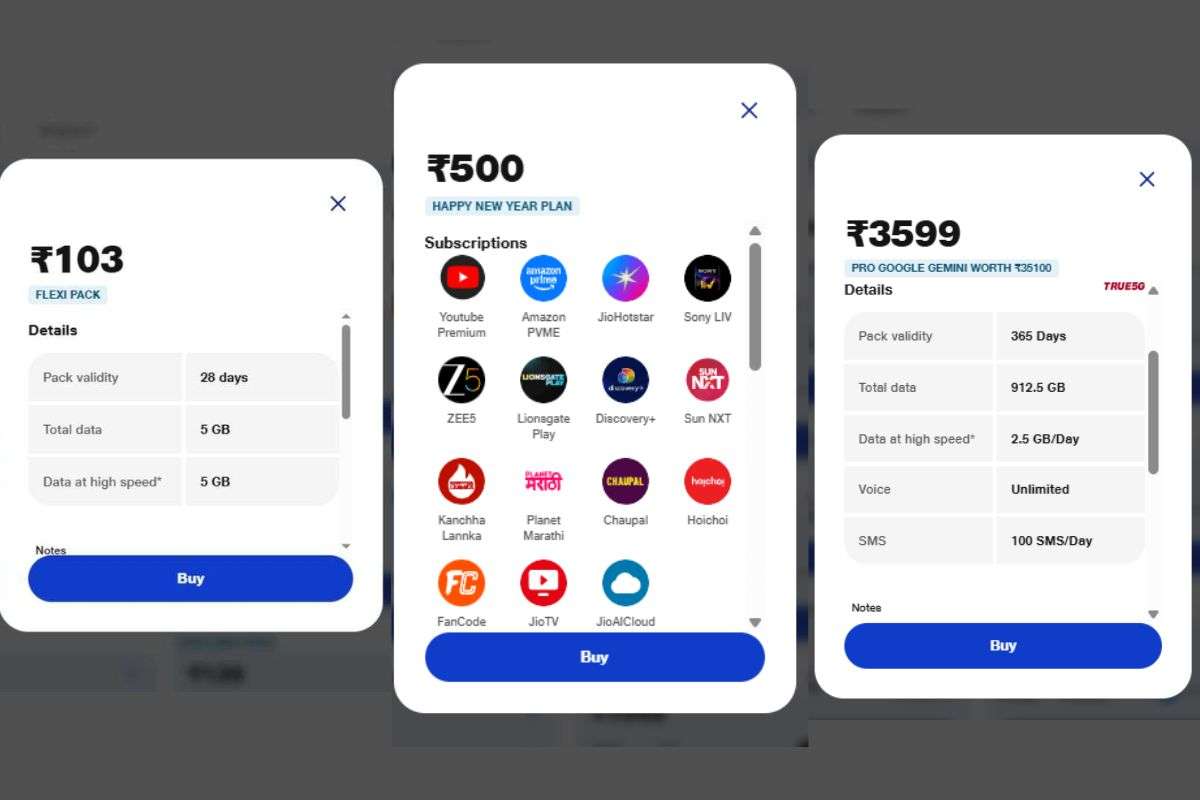 Jio Happy New Year 2026 Plans: नये साल के मौके पर रिलायंस जियो ने अपने प्रीपेड ग्राहकों के लिए जबरदस्त तोहफा दिया है. कंपनी ने तीन नये रिचार्ज प्लान लॉन्च किये हैं, जिनकी शुरुआत महज₹103 से होती है. इन प्लान्स में डेटा ऐड-ऑन से लेकर मासिक और वार्षिक सब्सक्रिप्शन तक के विकल्प दिये गए हैं. खास बात यह है कि इन पैक्स के साथ यूजर्स को ओटीटी ऐप्स, डेटा बेनिफिट्स और गूगल Gemini AI Pro जैसी प्रीमियम सेवाएं मुफ्त में मिलेंगी.